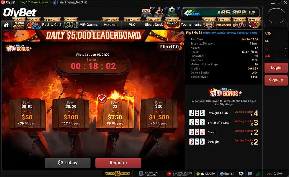 La plateforme regorge d’options de jeu en tous genres : des SPINS Ultra qui peuvent transformer 5 € en 1 million, des tournois Daily Legends avec plus de 1,5 million d’euros garantis chaque mois et, bien entendu, un large choix de formats (cash games dès 0,01 €, fastpoker, Sit & Go JAQKPOT jusqu’à 1 million…).